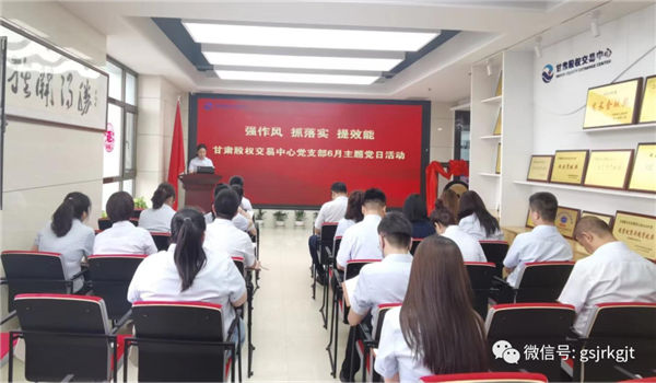 近日,甘肅股權(quán)交易中心黨支部召開“強(qiáng)作風(fēng),抓落實,提效能”主題黨日活動。支部書記樊亞娟主持會議,全體黨員及員工參加。