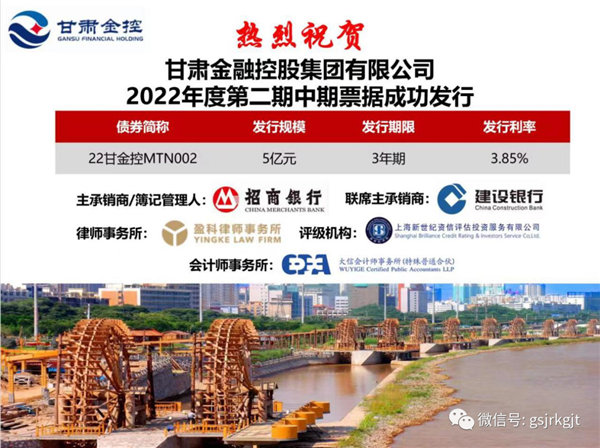 6月13日,甘肅金融控股集團有限公司2022年第二期中期票據(jù)成功發(fā)行,募集資金5億元。