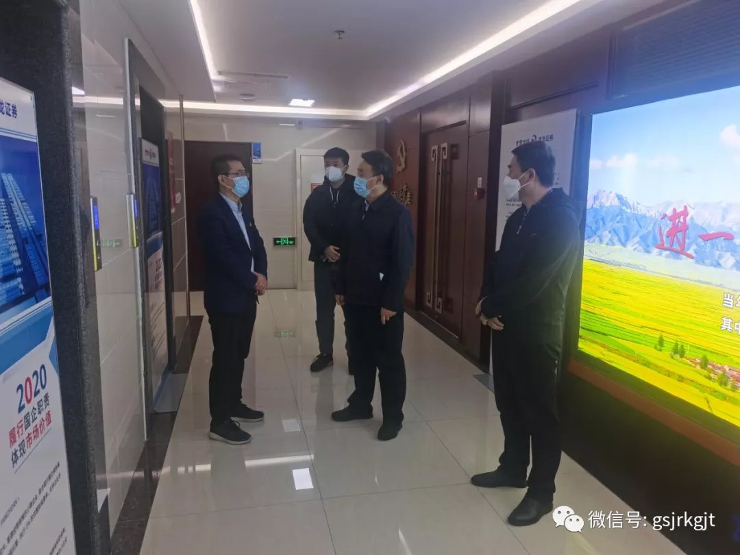 祁建邦一行采取“四不兩直”的方式,先后來到華龍證券東崗西路營業(yè)部、甘肅金控?fù)?dān)保集團(tuán)、隴原融資租賃公司和甘肅股權(quán)交易中心,看望慰問值班值守員工,詳細(xì)了解各單位疫情防控值班值守安排、防疫舉措和業(yè)務(wù)發(fā)展、服務(wù)保障有關(guān)情況。他強(qiáng)調(diào),一要切實(shí)提高政治站位,各單位主要負(fù)責(zé)人要扛牢疫情防控“第一責(zé)任人”責(zé)任,履好職盡好責(zé),不懈怠不缺位,看好自己的門,管好自己的人,層層壓實(shí)責(zé)任,確保集團(tuán)防疫工作高效開展。二要充分認(rèn)識(shí)當(dāng)前疫情形勢(shì)的復(fù)雜性、不確定性,時(shí)刻繃緊疫情防控這根弦,堅(jiān)決貫徹落實(shí)屬地疫情防控各項(xiàng)規(guī)定和措施要求以及集團(tuán)工作部署,扎緊筑牢內(nèi)部防線,嚴(yán)把人員和場所關(guān)口,做到底數(shù)清、情況明,隨時(shí)做好緊急情況應(yīng)急處置準(zhǔn)備,確保安全無憂。三要充分發(fā)揮自身金融優(yōu)勢(shì),大力推動(dòng)業(yè)務(wù)發(fā)展,靈活運(yùn)用各項(xiàng)金融手段,協(xié)同聯(lián)動(dòng),全力支持疫情防控和經(jīng)濟(jì)社會(huì)發(fā)展,持續(xù)發(fā)揚(yáng)開拓創(chuàng)新的優(yōu)良作風(fēng)和攻堅(jiān)克難的擔(dān)當(dāng)精神,為我省打贏疫情防控遭遇戰(zhàn)、阻擊戰(zhàn)貢獻(xiàn)金控力量。