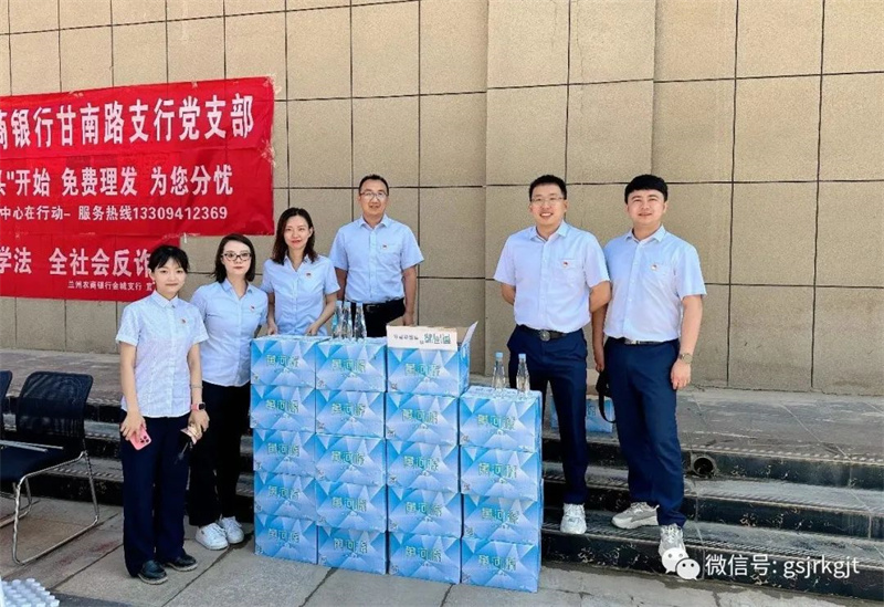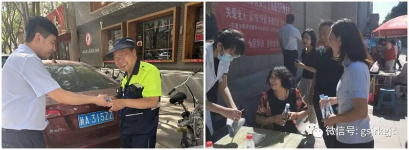 活動現場,甘肅金控集團志愿服務黨員協(xié)助衛(wèi)生服務中心、眼科醫(yī)院及社區(qū)工作人員向社區(qū)居民宣傳活動、維持秩序,為活動工作人員、社區(qū)街道社區(qū)的環(huán)衛(wèi)工人、交警等戶外工作人員在炎炎夏日送去清涼的礦泉水,向社區(qū)老人開展防范電信詐騙宣傳,提醒老人如何防止自己被騙,保護自己和家人的財產安全。