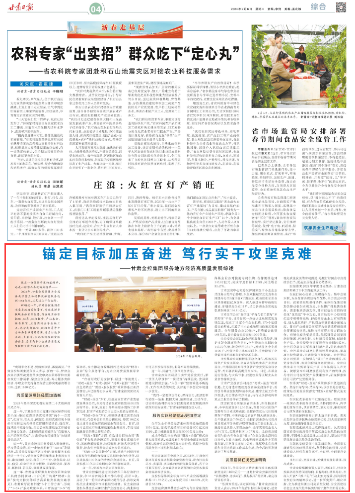編輯: 來(lái)源:甘肅日?qǐng)?bào) 甘肅金融控股集團(tuán)有限公司  更新:2024年02月06日 19:15 點(diǎn)擊:[]