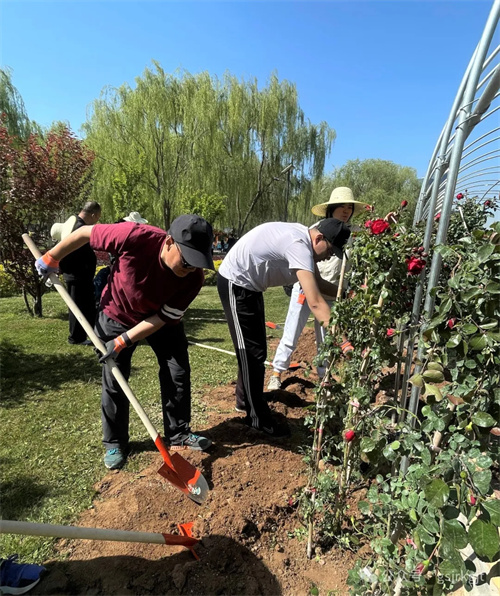 活動(dòng)當(dāng)日晴空萬(wàn)里,在公園專(zhuān)業(yè)技術(shù)人員指導(dǎo)下,集團(tuán)領(lǐng)導(dǎo)率先垂范,與干部職工“并肩奮戰(zhàn)”,大家分工明確、協(xié)作有序,共同栽種海棠、榆葉梅、碧桃等觀賞樹(shù)木和牡丹、月季、繡球等花卉,為黃河之畔再添新綠。泥土芬芳中,鐵鍬與笑語(yǔ)和鳴成曲,青年團(tuán)員們自發(fā)組成“搬運(yùn)苗木小分隊(duì)”穿梭奔忙保障供給;部分女職工組成“殺菌沃土先鋒組”,精準(zhǔn)投放藥劑為土壤消毒;由青年黨員組成的“喬木攻堅(jiān)團(tuán)” 更是勇挑重?fù)?dān),主動(dòng)承擔(dān)種植冠幅大、重量重的海棠、碧桃等喬木的任務(wù),喊著口號(hào)扶正碗口粗的樹(shù)干,覆土?xí)r反復(fù)校準(zhǔn)樹(shù)干垂直度,各小組默契配合,現(xiàn)場(chǎng)一片熱火朝天。隨著“種植先鋒隊(duì)”完成最后一株月季栽種,歷時(shí)三小時(shí)的連續(xù)奮戰(zhàn),295株新苗在公園內(nèi)指定規(guī)劃區(qū)域內(nèi)安家落戶(hù),形成“春觀海棠、夏賞繡球、丁香獨(dú)秀、月季連廊”豐富的景觀帶。