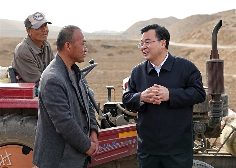 在白銀區(qū)武川鄉(xiāng)紅峴村、靖遠(yuǎn)縣東灣現(xiàn)代農(nóng)業(yè)產(chǎn)業(yè)園,胡昌升走進(jìn)田間地頭、蔬菜大棚,與正在勞作的群眾親切交流,詳細(xì)詢問春耕生產(chǎn)、鄉(xiāng)村振興等情況。他強(qiáng)調(diào),要做好農(nóng)資農(nóng)機(jī)服務(wù)保障,加強(qiáng)農(nóng)業(yè)技術(shù)指導(dǎo),全力抓好春耕生產(chǎn)。要善于挖掘和利用本地優(yōu)勢資源發(fā)展特色富民產(chǎn)業(yè),培育壯大新型農(nóng)業(yè)經(jīng)營主體,提升組織化集約化水平,促進(jìn)農(nóng)業(yè)增產(chǎn)增效、農(nóng)民增收致富。要落實五級書記抓鄉(xiāng)村振興要求,發(fā)揮好基層黨組織和黨員干部作用,更好組織群眾、宣傳群眾、凝聚群眾、服務(wù)群眾,緊緊圍繞促進(jìn)農(nóng)民增收這個中心任務(wù),把黨組織建在產(chǎn)業(yè)鏈上,把黨員聚在產(chǎn)業(yè)鏈上,讓群眾富在產(chǎn)業(yè)鏈上,把黨的組織優(yōu)勢轉(zhuǎn)化為加快鄉(xiāng)村發(fā)展的實際成效。