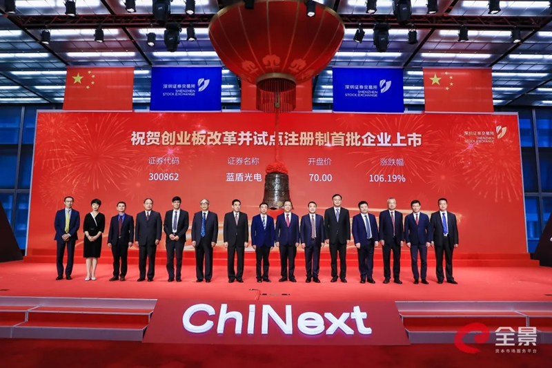 2020年8月24日,華龍證券保薦與主承銷的安徽藍(lán)盾光電子股份有限公司(股票代碼:300862,股票簡稱:藍(lán)盾光電)在深圳證券交易所創(chuàng)業(yè)板成功掛牌上市,成為注冊制下創(chuàng)業(yè)板首批18家掛牌企業(yè)之一。中共中央政治局委員、國務(wù)院副總理劉鶴發(fā)表書面致辭,中共中央政治局委員、廣東省委書記李希,中國證監(jiān)會主席易會滿出席上市儀式并致辭,廣東省省長馬興瑞,深圳市委書記王偉中出席上市儀式。全國人大財經(jīng)委、全國人大常委會法工委、最高人民法院、國家發(fā)改委、科技部、工信部、商務(wù)部、國資委等單位有關(guān)負(fù)責(zé)同志出席上市儀式。甘肅金控集團(tuán)黨委書記、董事長,華龍證券黨委書記、董事長陳牧原作為藍(lán)盾光電保薦機(jī)構(gòu)代表出席了掛牌儀式。藍(lán)盾光電子前身是成立于2001年的銅陵藍(lán)盾光電子有限公司,于2005年整體變更設(shè)立為股份有限公司,是國內(nèi)智能交通行業(yè)領(lǐng)先的產(chǎn)品供應(yīng)商和系統(tǒng)集成商。公司主營高端分析測量儀器制造、軟件開發(fā)、系統(tǒng)集成及工程、運(yùn)維服務(wù)、數(shù)據(jù)服務(wù)和軍工雷達(dá)部件,產(chǎn)品和服務(wù)主要應(yīng)用于環(huán)境監(jiān)測、交通管理、氣象觀測和軍工雷達(dá)等領(lǐng)域??蛻糁饕獮槿珖h(huán)境監(jiān)測、公安、交通、氣象等政府部門、企業(yè)及科研單位和部隊等。公司在光學(xué)、電子及信息技術(shù)、精密機(jī)械制造等領(lǐng)域積累了五十余年的科研和生產(chǎn)經(jīng)驗,是我國儀器儀表行業(yè)內(nèi)具有較強(qiáng)自主創(chuàng)新能力的成長型創(chuàng)新創(chuàng)業(yè)企業(yè)。藍(lán)盾光電子本次IPO公開發(fā)行股票3,297萬股,發(fā)行價格為33.95元/股,募集資金總額約為11.19億元。本次募集資金投資項目聚焦于公司近年增長速度較快的環(huán)境監(jiān)測領(lǐng)域。募投項目的實施,將進(jìn)一步提升公司研發(fā)實力、提升公司生態(tài)環(huán)境監(jiān)測全產(chǎn)業(yè)鏈綜合服務(wù)能力、加快公司承擔(dān)的國家重大科研專項的產(chǎn)業(yè)化進(jìn)程,有利于公司搶抓環(huán)境監(jiān)測公共服務(wù)供給模式改變而帶來的市場機(jī)遇,鞏固公司環(huán)境監(jiān)測運(yùn)維市場行業(yè)地位。華龍證券投行團(tuán)隊依據(jù)多年深耕資本市場積累沉淀下來的豐富經(jīng)驗,通過深入調(diào)研和專業(yè)高效的盡職調(diào)查工作,為藍(lán)盾光電子量身打造了上市方案。從首次申報到歷次反饋、再到順利過會,華龍證券與藍(lán)盾光電子建立了互信共贏的伙伴關(guān)系,并助力藍(lán)盾光電子駛?cè)胭Y本快車道,借助資本市場的優(yōu)質(zhì)資源配置能力進(jìn)一步快速、健康、可持續(xù)發(fā)展,做大做強(qiáng)!華龍證券北京分公司(投資銀行)已在北京、上海、深圳、杭州、蘭州、安徽等地區(qū)設(shè)立了業(yè)務(wù)分部,項目遍及全國。投資銀行團(tuán)隊業(yè)務(wù)經(jīng)驗豐富、職業(yè)操守良好、工作規(guī)范嚴(yán)謹(jǐn)、進(jìn)取精神強(qiáng)烈。經(jīng)過二十年的磨礪,華龍證券投資銀行業(yè)務(wù)取得了長足的發(fā)展:專業(yè)隊伍不斷壯大,專業(yè)技術(shù)和專業(yè)經(jīng)驗不斷積累,專業(yè)化的服務(wù)水平不斷提高,在很多細(xì)分領(lǐng)域和細(xì)分行業(yè)華龍現(xiàn)已走到市場前沿,證券研發(fā)、營銷、創(chuàng)新等綜合實力不斷提升,公司已經(jīng)具備大型股票、債券發(fā)行項目運(yùn)作的實力和經(jīng)驗,并和一批國際性企業(yè)龍頭建立了長期的戰(zhàn)略合作關(guān)系。華龍證券將始終秉承客戶價值最大化這一發(fā)展宗旨,致力于為客戶提供專業(yè)化、精準(zhǔn)化、多元化的服務(wù)?!耙阅鸀楸?,成人達(dá)己”,華龍證券愿與您攜手同行,共創(chuàng)偉業(yè)。