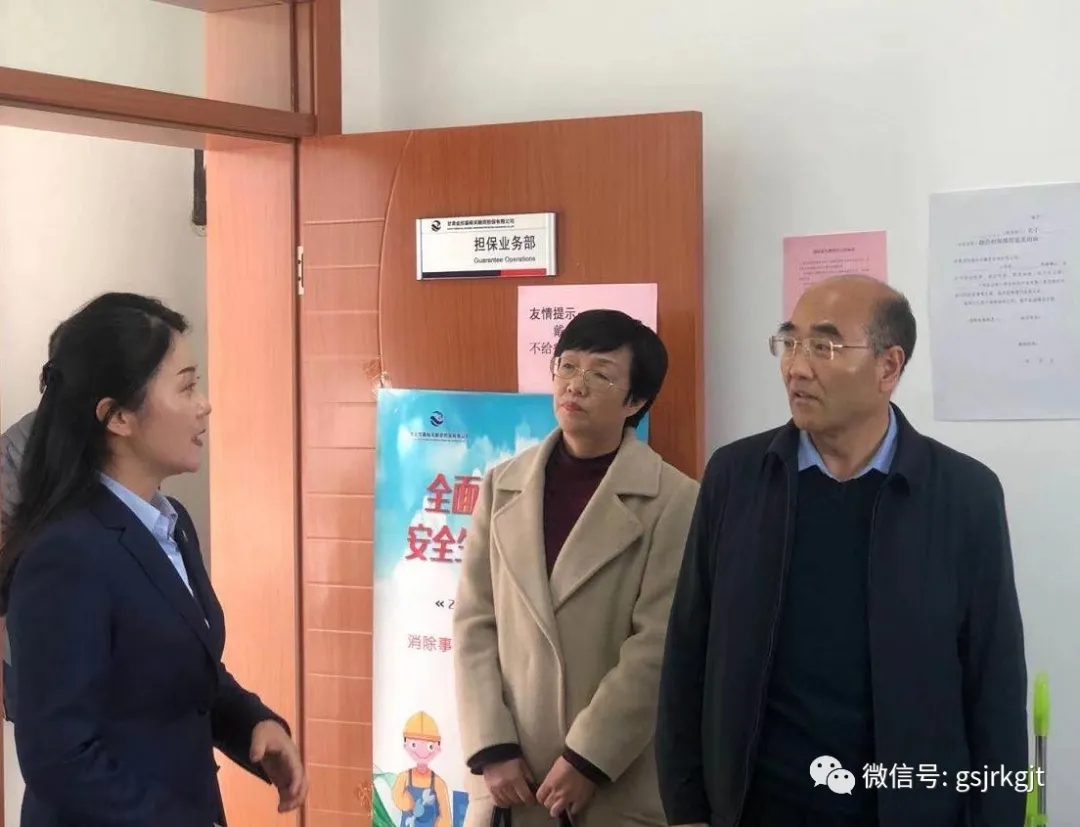 王毅一行親切看望慰問了甘肅金控嘉峪關(guān)擔(dān)保公司全體干部職工,現(xiàn)場了解公司擔(dān)保流程、風(fēng)險控制、獎補政策等工作情況,就公司發(fā)展過程中遇到問題現(xiàn)場指導(dǎo)交流。