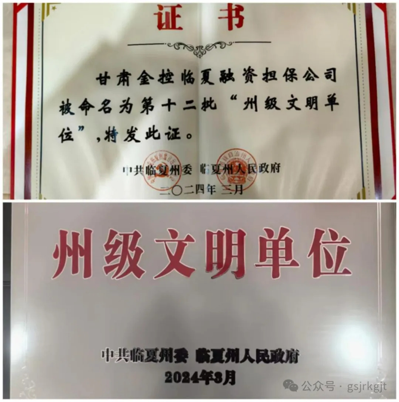 近日,金控臨夏擔保被臨夏州委、州政府授予第十二批“州級文明單位”稱號,標志著公司精神文明建設工作取得了新成果、再上新臺階。