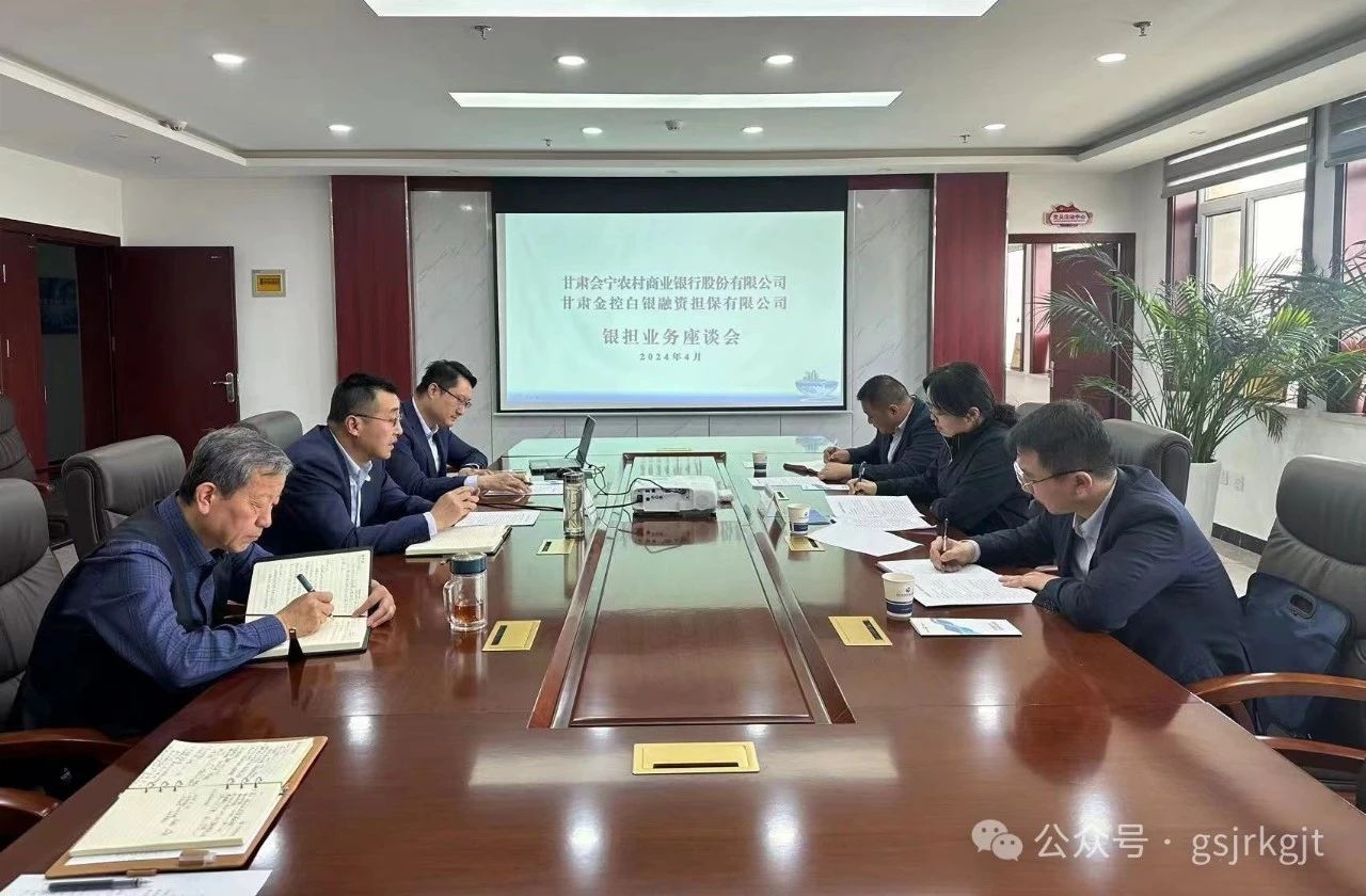 近日,會寧農(nóng)商銀行副行長繆飛娟等一行3人到訪金控白銀擔(dān)保,雙方就開展銀擔(dān)業(yè)務(wù)合作召開了座談會。