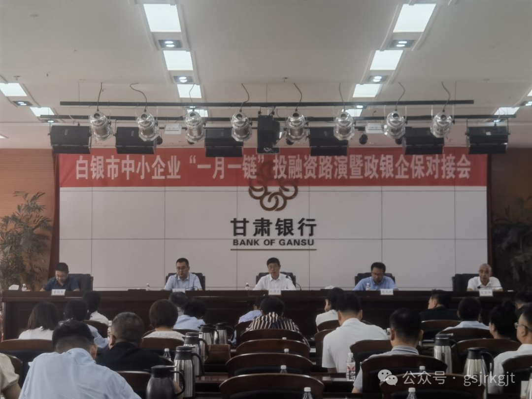 8月27日,白銀市工信局聯(lián)合人民銀行白銀市分行、甘肅銀行白銀分行,組織白銀市各縣(區(qū))工信局、銀行業(yè)金融機(jī)構(gòu)、白銀高新區(qū)管委會(huì)、中小企業(yè)代表,開展中小企業(yè)“一月一鏈”投融資路演暨政銀企保對(duì)接活動(dòng),金控白銀擔(dān)保受邀參加并介紹相關(guān)擔(dān)保產(chǎn)品。