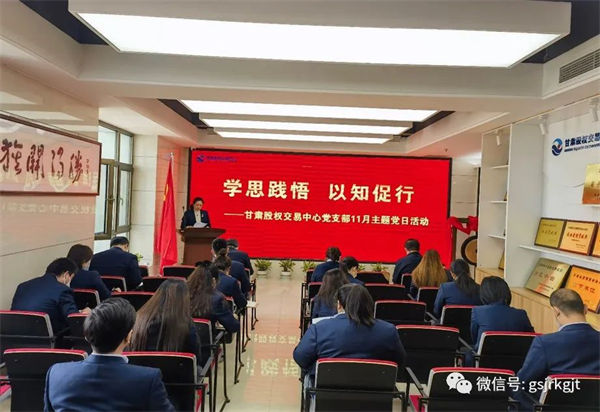 甘肅股權(quán)交易中心黨支部認真落實集團黨委部署,緊密結(jié)合工作實際,制訂深入學(xué)習(xí)宣傳貫徹黨的二十大精神工作舉措,組織開展“學(xué)思踐悟 以知促行”主題黨日活動,系統(tǒng)學(xué)報告、學(xué)黨章,專題觀影《領(lǐng)航》,參加“金徽杯”黨的二十大精神線上知識競賽,深入開展研討交流,切實把全體干部員工思想和行動統(tǒng)一的黨的二十大精神上來,以昂揚向上的精神狀態(tài),務(wù)實的工作作風(fēng),苦干實干、擔(dān)當(dāng)作為,全力推動國企改革三年行動高質(zhì)量收官,聚焦主責(zé)主業(yè),竭力服務(wù)“專精特新”等企業(yè)發(fā)展,奮力書寫新時代股交工作新答卷。