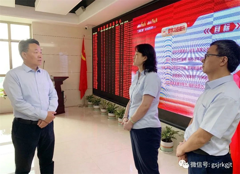 6月7日,甘肅金控集團(tuán)黨委書(shū)記、董事長(zhǎng)祁建邦以“四不兩直”方式,深入金控?fù)?dān)保集團(tuán)、甘肅征信公司、甘肅股權(quán)交易中心等子公司看現(xiàn)場(chǎng)、摸實(shí)情,針對(duì)經(jīng)營(yíng)發(fā)展中的難點(diǎn)痛點(diǎn)堵點(diǎn)找癥結(jié)、議對(duì)策,結(jié)合市場(chǎng)環(huán)境變化和公司實(shí)際理思路、謀發(fā)展,強(qiáng)調(diào)要以更加務(wù)實(shí)的作風(fēng)、更加有效的舉措推動(dòng)各項(xiàng)工作落實(shí)落細(xì),確保省委省政府決策部署在集團(tuán)公司落地生根、見(jiàn)到實(shí)效。