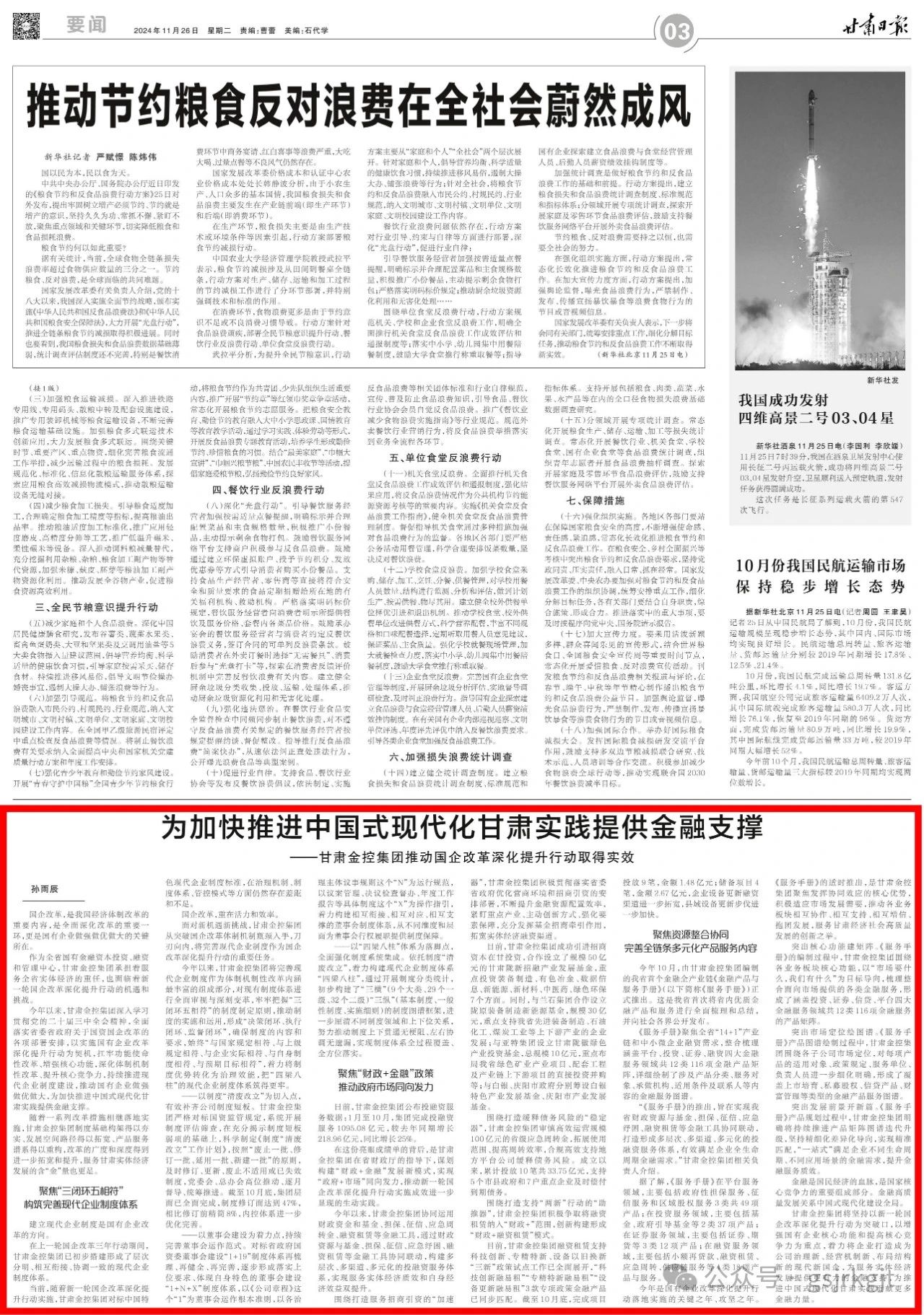 甘肅金控集團(tuán)將堅(jiān)持以新一輪國(guó)企改革深化提升行動(dòng)為突破口,以增強(qiáng)國(guó)有企業(yè)核心功能和提高核心競(jìng)爭(zhēng)力為重點(diǎn),著力將企業(yè)打造成為公司治理新、經(jīng)營(yíng)機(jī)制新、布局結(jié)構(gòu)新的現(xiàn)代新國(guó)企,為服務(wù)實(shí)體經(jīng)濟(jì)發(fā)展提供更有力的金融支持,為推進(jìn)中國(guó)式現(xiàn)代化甘肅實(shí)踐貢獻(xiàn)更多金融力量。