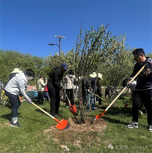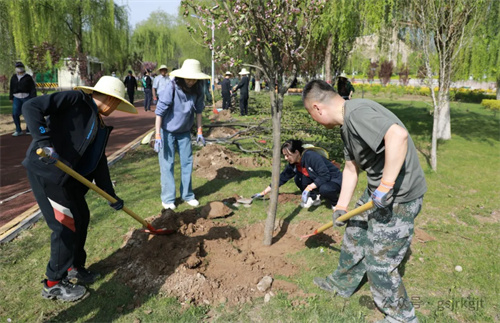 活動(dòng)當(dāng)日晴空萬(wàn)里,在公園專(zhuān)業(yè)技術(shù)人員指導(dǎo)下,集團(tuán)領(lǐng)導(dǎo)率先垂范,與干部職工“并肩奮戰(zhàn)”,大家分工明確、協(xié)作有序,共同栽種海棠、榆葉梅、碧桃等觀賞樹(shù)木和牡丹、月季、繡球等花卉,為黃河之畔再添新綠。泥土芬芳中,鐵鍬與笑語(yǔ)和鳴成曲,青年團(tuán)員們自發(fā)組成“搬運(yùn)苗木小分隊(duì)”穿梭奔忙保障供給;部分女職工組成“殺菌沃土先鋒組”,精準(zhǔn)投放藥劑為土壤消毒;由青年黨員組成的“喬木攻堅(jiān)團(tuán)” 更是勇挑重?fù)?dān),主動(dòng)承擔(dān)種植冠幅大、重量重的海棠、碧桃等喬木的任務(wù),喊著口號(hào)扶正碗口粗的樹(shù)干,覆土?xí)r反復(fù)校準(zhǔn)樹(shù)干垂直度,各小組默契配合,現(xiàn)場(chǎng)一片熱火朝天。隨著“種植先鋒隊(duì)”完成最后一株月季栽種,歷時(shí)三小時(shí)的連續(xù)奮戰(zhàn),295株新苗在公園內(nèi)指定規(guī)劃區(qū)域內(nèi)安家落戶(hù),形成“春觀海棠、夏賞繡球、丁香獨(dú)秀、月季連廊”豐富的景觀帶。