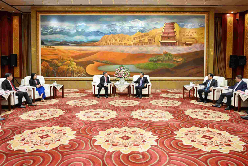任振鶴對(duì)高泉慶一行來(lái)甘訪問(wèn)表示歡迎,并簡(jiǎn)要介紹了甘肅經(jīng)濟(jì)社會(huì)發(fā)展情況。他說(shuō),在習(xí)近平主席和新方領(lǐng)導(dǎo)人戰(zhàn)略引領(lǐng)下,中新關(guān)系保持良好發(fā)展勢(shì)頭,甘肅與新加坡在科技、教育、文化、醫(yī)療衛(wèi)生等方面的合作交流不斷深化,人員往來(lái)更加密切。習(xí)近平主席指出,甘肅最大的機(jī)遇在于“一帶一路”。隨著高質(zhì)量共建“一帶一路”、西部陸海新通道建設(shè)、新時(shí)代西部大開(kāi)發(fā)、黃河流域生態(tài)保護(hù)和高質(zhì)量發(fā)展等深入實(shí)施和《區(qū)域全面經(jīng)濟(jì)伙伴關(guān)系協(xié)定》的全面生效,甘肅歷史文化、資源稟賦、科教人才、工業(yè)基礎(chǔ)、地理區(qū)位的組合優(yōu)勢(shì)正在加速釋放,也為雙方提供了更大市場(chǎng)、更多需求、更深層次的合作空間。新加坡中華總商會(huì)是新加坡歷史最悠久的重要商團(tuán),在國(guó)際商業(yè)舞臺(tái)上享有盛譽(yù)。希望商會(huì)充分發(fā)揮橋梁紐帶作用,更多宣傳甘肅、推介甘肅,推動(dòng)甘肅與新加坡各領(lǐng)域合作再上新臺(tái)階。我們將持續(xù)營(yíng)造市場(chǎng)化、法治化、國(guó)際化一流營(yíng)商環(huán)境,為企業(yè)提供優(yōu)質(zhì)高效的服務(wù),讓大家投資在甘肅、滿意在甘肅、收獲在甘肅。