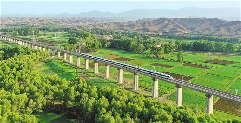 列車(chē)在蘭張高鐵蘭武段行駛。蘭州至張掖高鐵中川機(jī)場(chǎng)至武威東段于2024年6月開(kāi)通運(yùn)營(yíng)。資料圖
