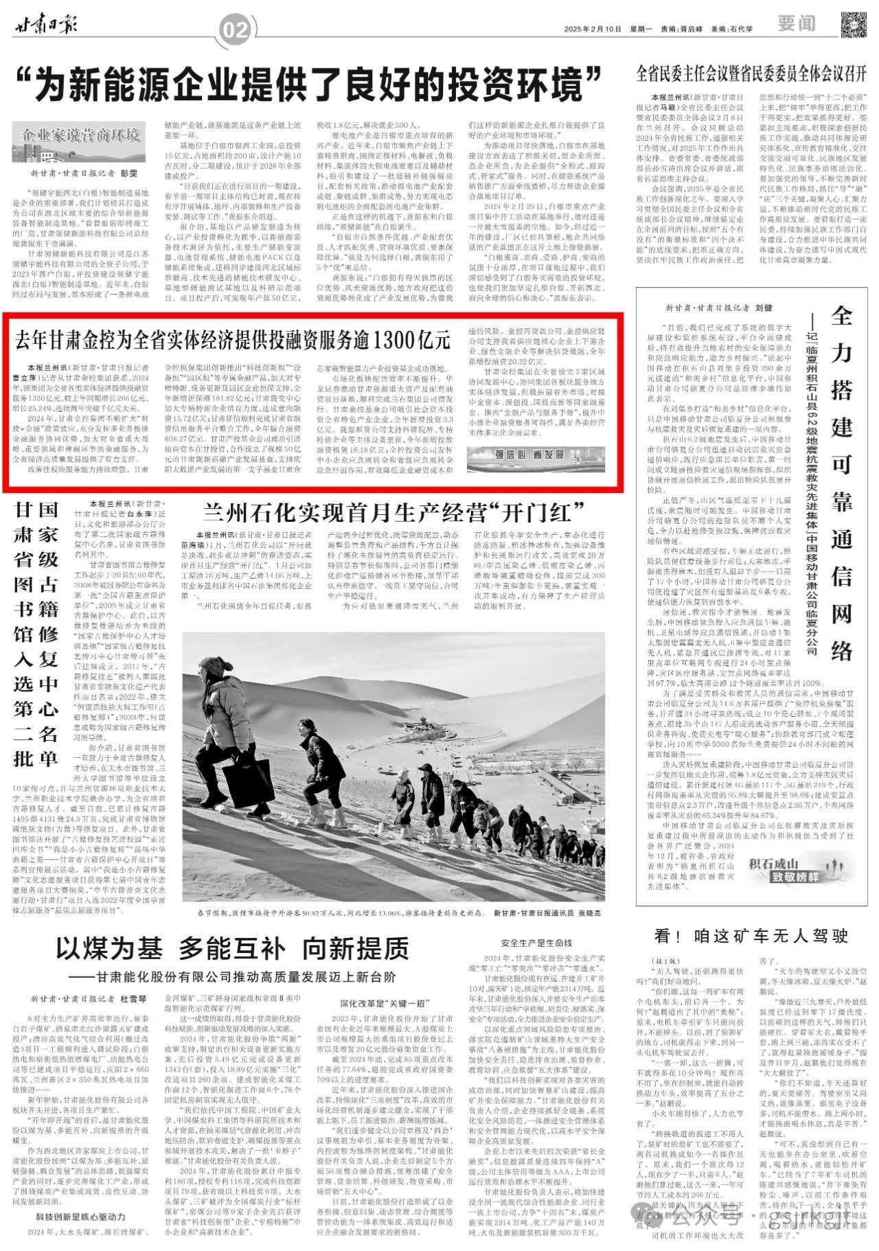 2024年,甘肅金控集團不斷擴大“財政+金融”政策效應,充分發(fā)揮多業(yè)務板塊金融服務協同優(yōu)勢,加大對全省重大戰(zhàn)略、重要領域和薄弱環(huán)節(jié)的金融服務,為全省經濟高質量發(fā)展提供了有力支撐。