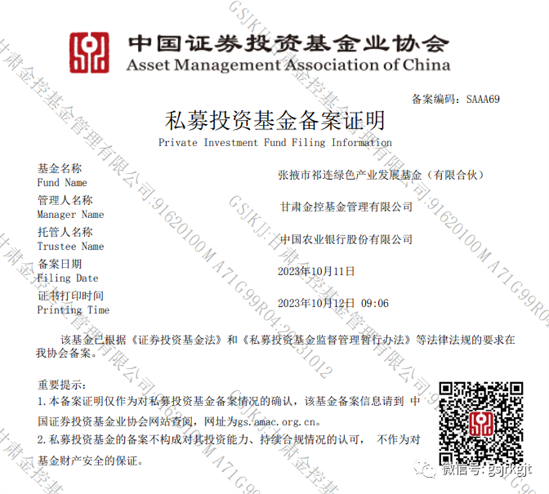 近日,張掖市祁連綠色產(chǎn)業(yè)發(fā)展基金(有限合伙)在中國(guó)證券基金業(yè)協(xié)會(huì)備案。該基金備案時(shí)正逢《私募投資基金監(jiān)督管理?xiàng)l例》頒布實(shí)施,金控基金公司充分研究新規(guī)要求,并做足備案前的準(zhǔn)備工作,為順利通過(guò)基金備案奠定了基礎(chǔ)。