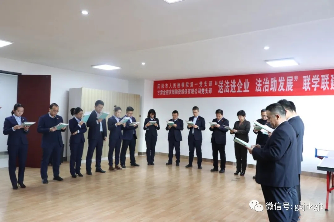 近日,慶陽(yáng)市人民檢察院聯(lián)合甘肅金控慶陽(yáng)擔(dān)保公司開(kāi)展聯(lián)學(xué)聯(lián)建活動(dòng),創(chuàng)新黨建引領(lǐng)新形式,豐富黨建工作新內(nèi)容,增強(qiáng)企業(yè)依法經(jīng)營(yíng)新理念,全面推動(dòng)法治管理建設(shè)縱深發(fā)展。