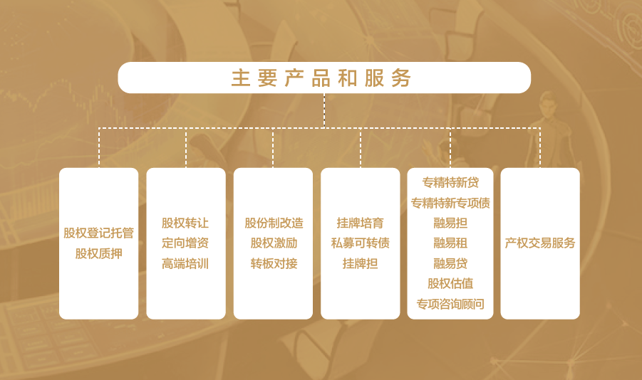 經(jīng)營范圍包括:為非上市企業(yè)的股權(quán)登記、托管、轉(zhuǎn)讓、交易、融資、結(jié)算、過戶、分紅、企業(yè)規(guī)范、培育等提供場所和服務(wù);組織和監(jiān)督股權(quán)托管交易活動;發(fā)布市場交易信息;為非上市公司進(jìn)場掛牌提供融資、咨詢等綜合服務(wù);為各類企業(yè)提供股權(quán)轉(zhuǎn)讓及增資擴(kuò)股、實物資產(chǎn)、債權(quán)、不良資產(chǎn)和集中采購等產(chǎn)權(quán)交易業(yè)務(wù)服務(wù),以及政策咨詢、方案設(shè)計、項目推介、資產(chǎn)盡調(diào)等增值服務(wù)。
